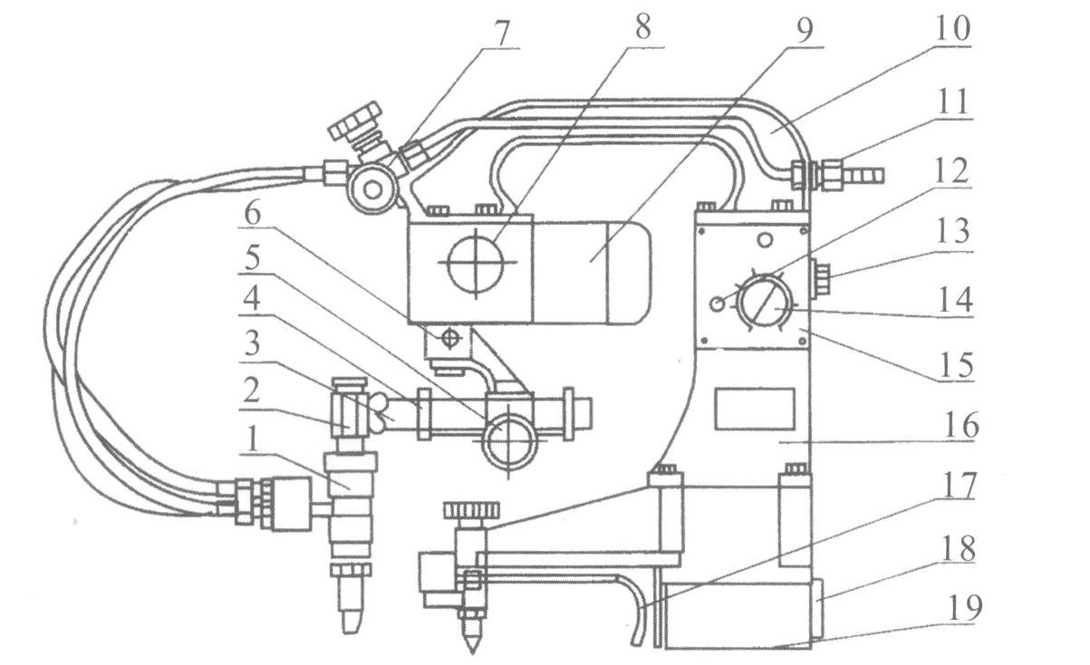 2.升降調節套                     8.氧、乙炔接頭                  14.磁鐵