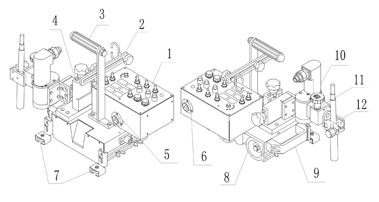 12.焊槍夾持器總成:是焊槍的夾持裝置,可以方便地進行維修、調整和焊槍的拆卸。